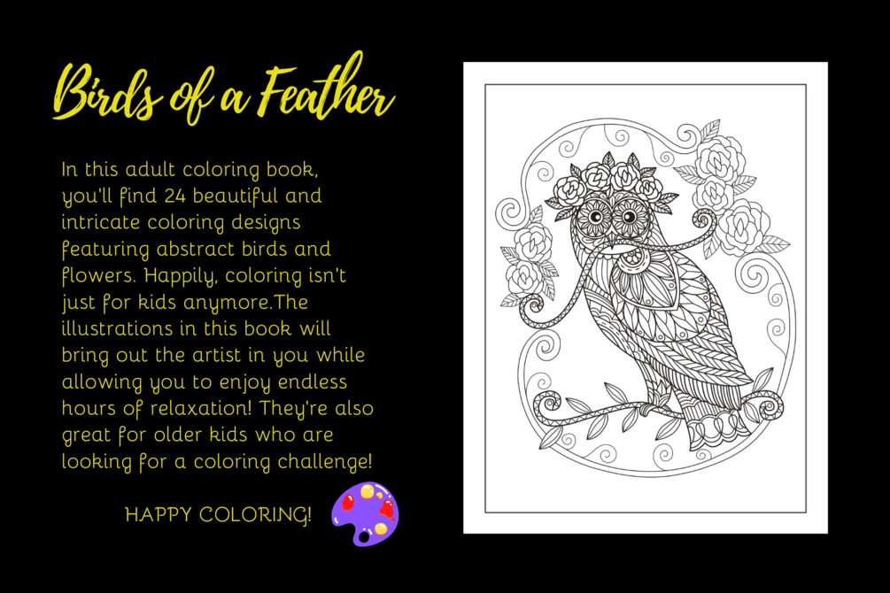 BIRDS OF A FEATHER - Adult Coloring Book - 24 Images - Instant Download