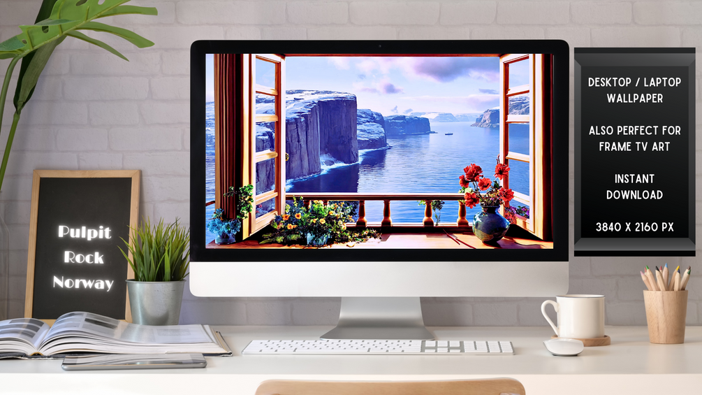 Bring the breathtaking beauty of Norway's Pulpit Rock to your screen with this stunning digital wallpaper, part of our ROOM WITH A VIEW series.